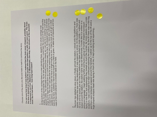 I explained to the users that the text in bold font is the original story and there are two sequel that is suppose to continue the story. I asked the users to read the two sequels and put a sticker on to choose which one they like better.